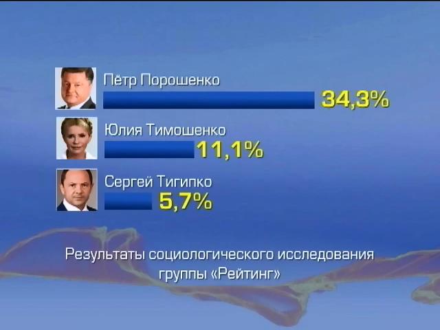Порошенко по-прежнему лидирует в президентской гонке, с большим отрывом опережая ближайшего конкурента Тимошенко .За Порошенко готовы проголосовать более 34 процентов избирателей. Юлию Тимошенко поддерживают - одиннадцать с небольшим. На третьем месте в президентском забеге - Сергей Тигипко - 5,7%.