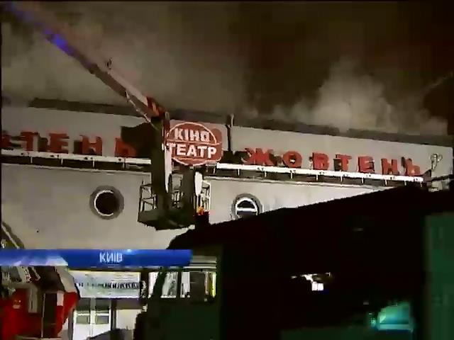 Ввечерi у столицi палав найстарiший кiнотеатр мiста "Жовтень". Свiдки кажуть, що пiд час сеансу невiдомi на заднiх рядах пiдпалили чи то фаeр, чи димову шашку. Люди покинули залу. Постраждалих немаe. На той момент у залi було близько 60 глядачiв. Вогонь почав швидко поширюватися примiщенням.